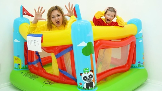 65 Mom forbids her child to jump on an inflatable trampoline