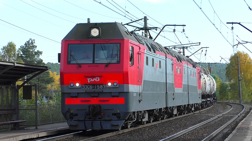 3ЭС6-1583 "Синара" с грузовым поездом и приветливой бригадой следует через о.п. Новоталица