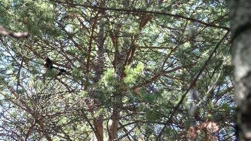 Белка гоняет сорок, а они ее.