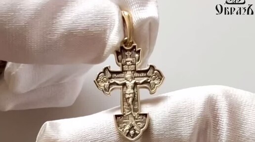 Крест «Распятие. Ангел Хранитель. Свв. Николай Угодник, Александр Невский, Дмитрий Донской», золото 585 проба желтое (арт. 201.479)
