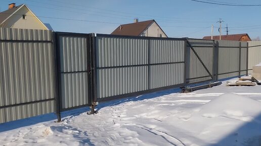 Откатные ворота поставили, но пока без двигателя!