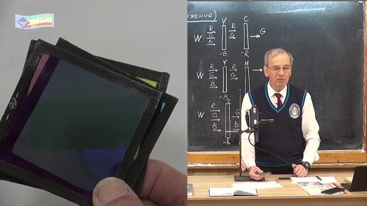 Формирование "черного" цвета в субтрактивной цветовой модели с помощью сложения "желтого", "пурпурного" и "голубого" фильтров.
