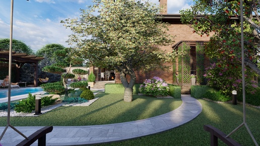 Ландшафтный дизайн участка 6 соток в Адыгее. Эклектика и Пейзажный стиль