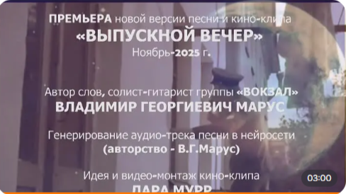 Премьера песни "ВЫПУСКНОЙ ВЕЧЕР" автор слов Владимир Марус, музыка и вокал ИИ, видео-монтаж Лара Мурр