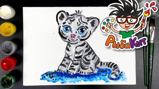 Снежный Тигр / рисуем красками гуашь 7+ с РыбаКит