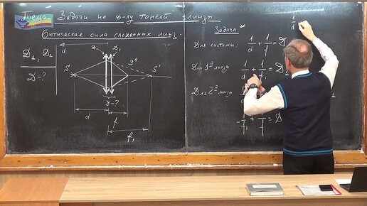 Задача на определение оптической силы системы двух линз, сложенных в плотную