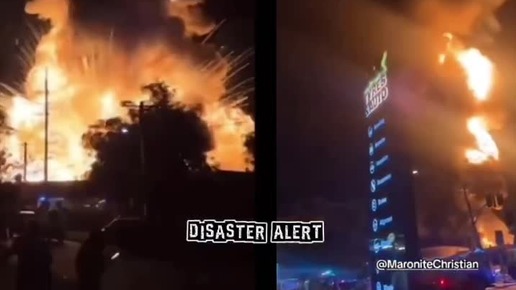 Мощный взрыв резервуара с химикатами на заводе в Сиднее во время сильного пожара.