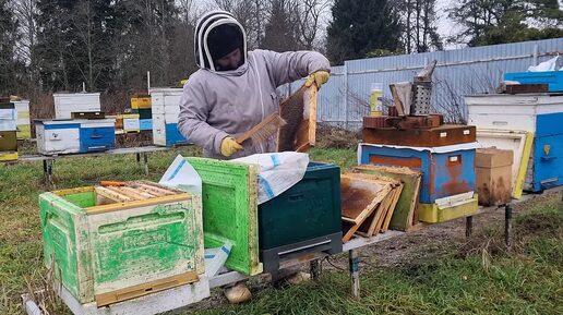 29.11.25 Дятел пробил улей. Спасаем уцелевших пчёлок.