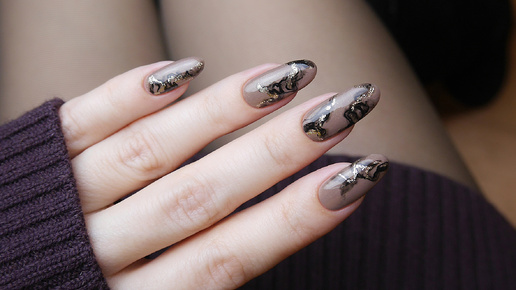 Осенний маникюр с акварельными разводами (обычный лак)