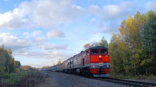 2ТЭ10Ук-0411 с контейнерным грузовым поездом и приветливой бригадой