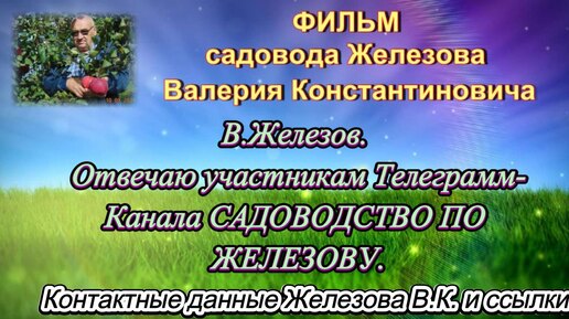 В.Железов. Отвечаю участникам Телеграмм-Канала САДОВОДСТВО ПО ЖЕЛЕЗОВУ.