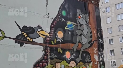 Котёнок с улицы Лизюкова и Ворона разместились на детской площадке на Бульваре Победы
