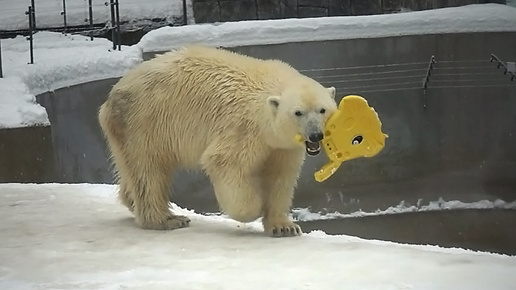 У медвежат Белки и Стрелки сначала поваляшки, затем игра с зайцем, легкий перекус и снова игры.