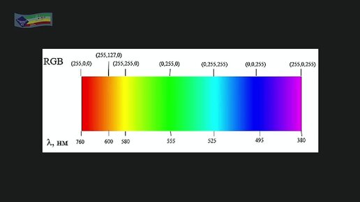Длина волн цветов спектра и их сопоставление со значениями в аддитивной системе RGB