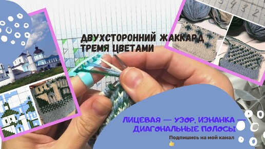 Двухсторонний жаккард 3 цветами: лицевая — узор, изнанка — диагональные полосы