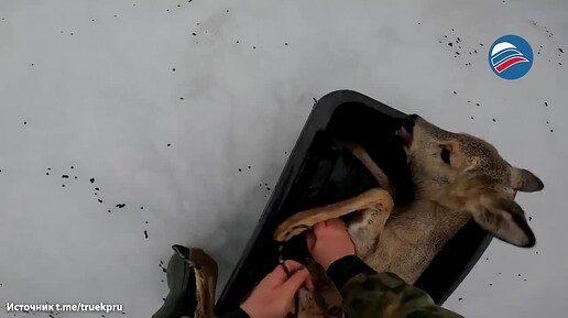 2 друга спасли стадо косуль из ледяного плена в Новосибирской области