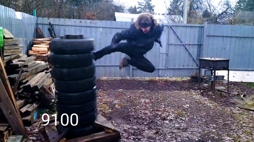 Удары руками по макиваре из шин. День 91. 100 дней по 100 ударов.