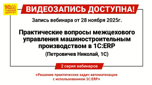 Вебинар "Практические вопросы межцехового управления машиностроительным производством в 1С:ERP"