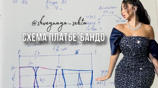 Построение платье-бандо из пайеток на бархатном трикотаже (для кроя по ткани)