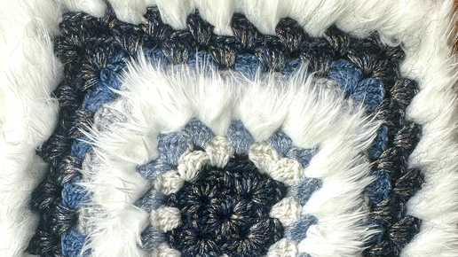 Процесс вязания жакета/кардигана в стиле «Бабушкин квадрат» с дрбавлением меховой пушистой пряжи.