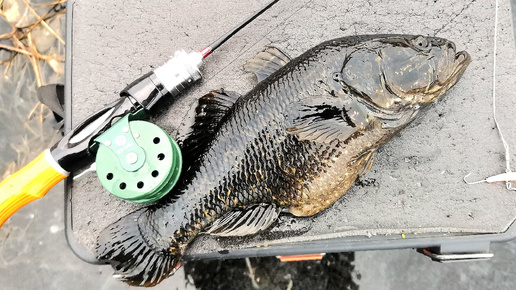 Ловлю ротанов. Экземпляр на 595 грамм. Зимняя рыбалка.