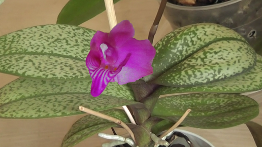 Дико красивая орхидея доритис Pulcherrima var. marmorata, домашнее цветение.