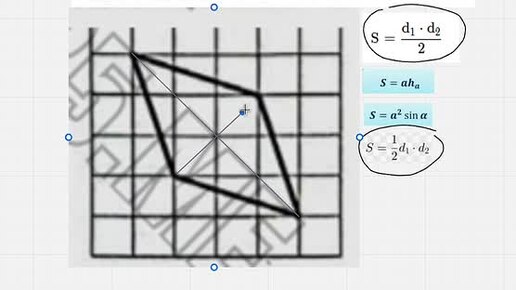 На клетчатой бумаге с размером клетки 1 на 1 изображён ромб, Найдите его площадь
