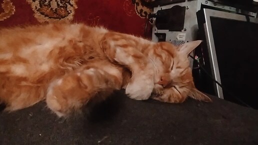 Сонный кот гимнаст держит вытянутую лапу на вису