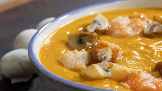 Суп который можно не готовить. Тыквенный том ям с креветками и грибами