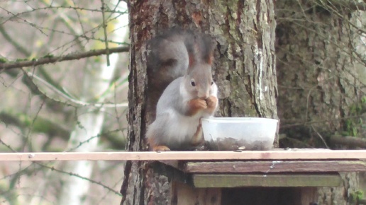 Птицы, белки. Кормушка для птиц.