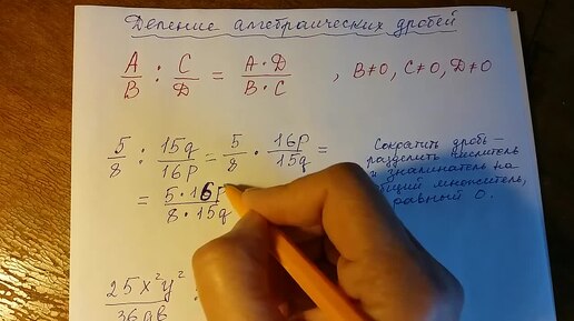 Алгебра 7, 8 класс. Деление алгебраических дробей.