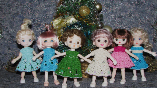 Вязаные наряды на шарнирных кукол 16 см (bjd 16 sm). Предновогодний показ "Рождественская Сказка для кукол".
