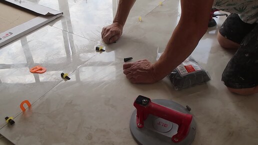 Укладка керамогранита 900 на 1800 мм.
