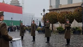 Смена Почетного Караула в Будайской крепости у президентского дворца Шандор. Будапешт. Венгрия.