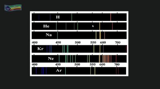 Спектральные линии: водорода, гелия, натрия, криптона, неона и аргона