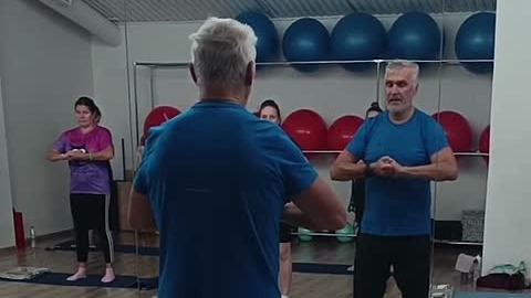 Упражнение для дыхания. Упражнение проводит тренер Иванов Олег Валенинович