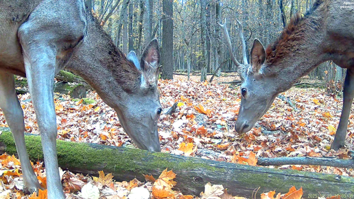 Фотоловушка в лесу пугает зверей, но не очень. Благородные олени, лани и енотовидная собака