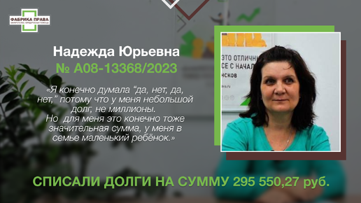 Отзыв о списании долгов в юридической компании "Фабрика Права"
