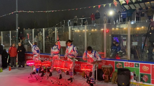 Зима в Москве. Шоу световых барабанов в парке Яуза.