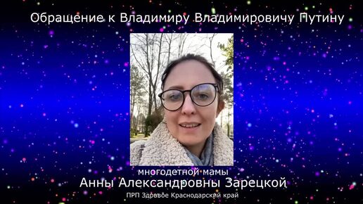 Обращение к президенту В.В. Путину многодетной мамы Анны Александровны Зарецкой