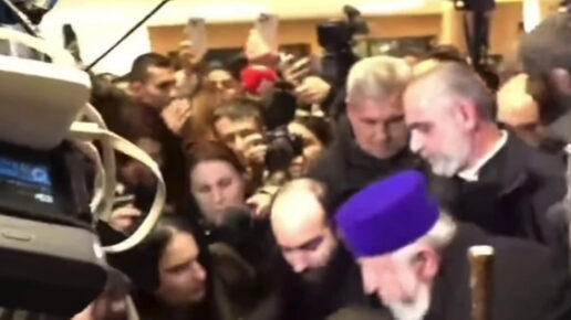 Поступок армянского патриарха в аэропорту изумил журналистов: он нагнулся, чтобы поднять упавшую у оператора насадку от объектива
