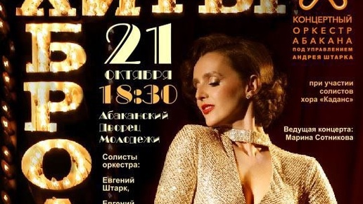 "Хиты Бродвея" - Концертный оркестр Абакана, дирижёр Андрей Штарк, основная солистка Любовь Штарк.