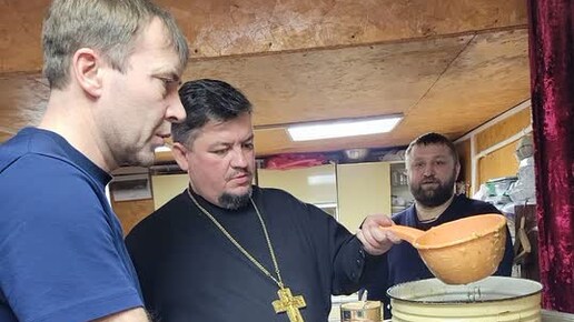 Три близких друга: Виктор Алешин, Андрей Коновалов и священник Виталий Чуркин вот уже как четыре года коротают вечера, разливая парафин.
