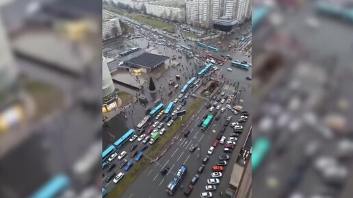 Ситуация у станции «Пионерская». Как сообщают очевидцы в соцсетях, транспортный коллапс связан с открытием ТЦ «Голливуд».