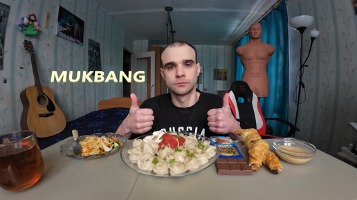 МУКБАНГ ПЕЛЬМЕНИ / ВЫПЕЧКА - КОСИЧКА С КУРИЦЕЙ / САЛАТ / ШОКОЛАД Alpen Gold / АРАХИСОВАЯ ПАСТА / ЕДА / АСМР