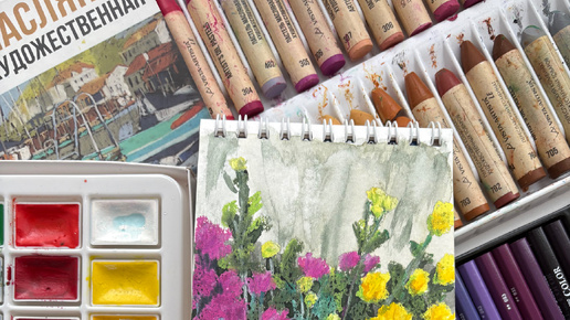 Три осенних сюжета в смешанной технике: масляная пастель, акварель, цветные карандаши|Рассказываю, как рисовала