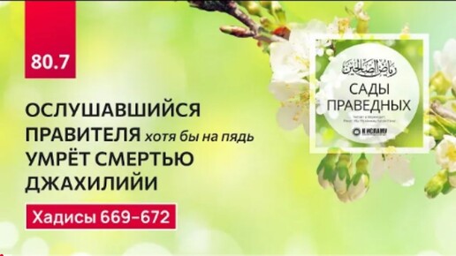 80.7 Сады праведных. ОСЛУШАВШИЙСЯ ПРАВИТЕЛЯ хотя бы на пядь УМРЁТ СМЕРТЬЮ ДЖАХИЛИЙИ. Хадисы 669-672