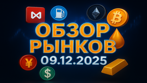 Обзор РФ рынка 09.12.2025 | Торговые идеи | Акции | Биткоин | Крипта | Золото | Юань | Доллар Нефть