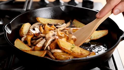 УСАТЫЙ ШЕФ жарит картошку с грибами: хрустит так, что соседи в очередь встали!
