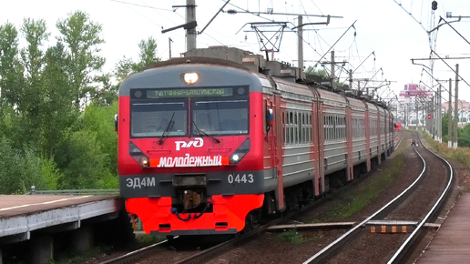 ЭД4М-0443 "Молодежный" сообщением Санкт-Петербург — Гатчина-Балтийская прибывает на о.п. Дачное